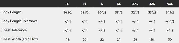 Sizes: S • M • L • XL • 2XL • 3XL • 4XL